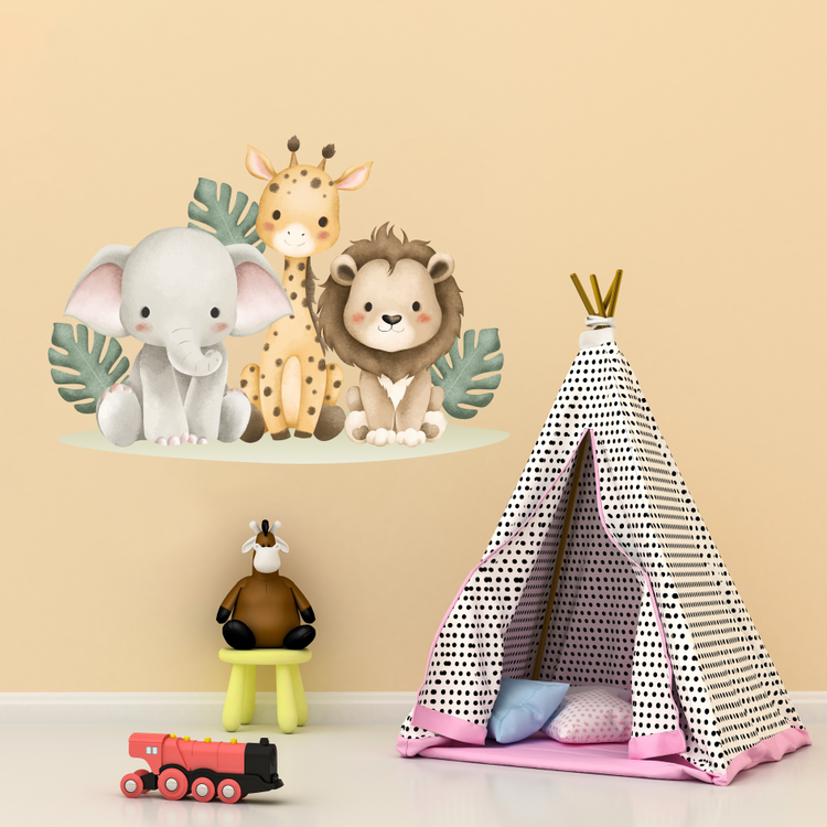 استیکر دیواری حیوانات جنگل شاد طرح آبرنگ - کد W013