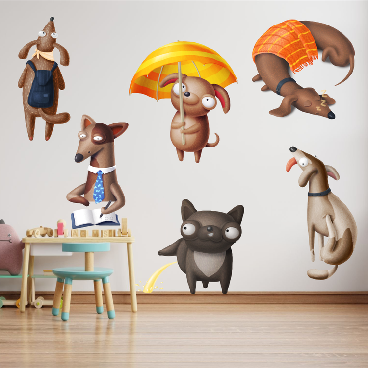 استیکر دیواری اتاق پت - پک سگهای با نمک - کد W076