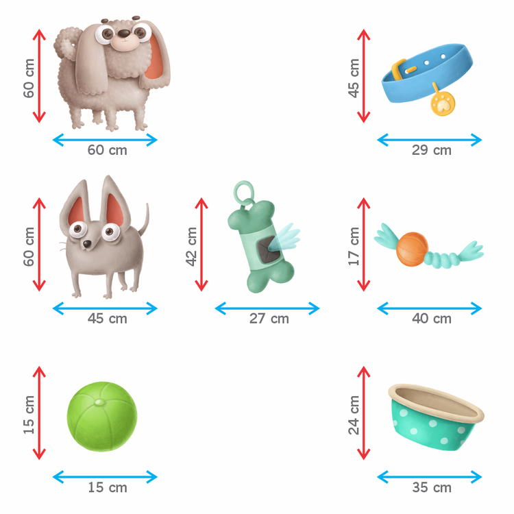 استیکر دیواری اتاق پت - پک سگهای بامزه با لوازمشون - کد W077