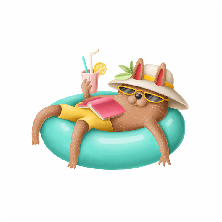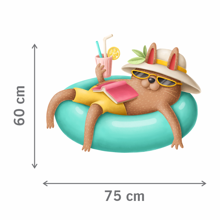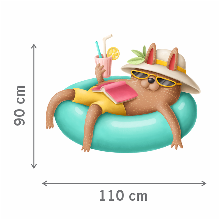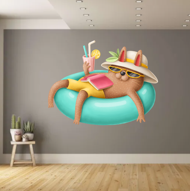 استیکر دیواری اتاق پت - گربه در تیوپ شنا - کد W079