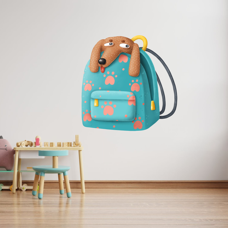 استیکر دیواری اتاق پت - هاپو در کوله پشتی - کد W078