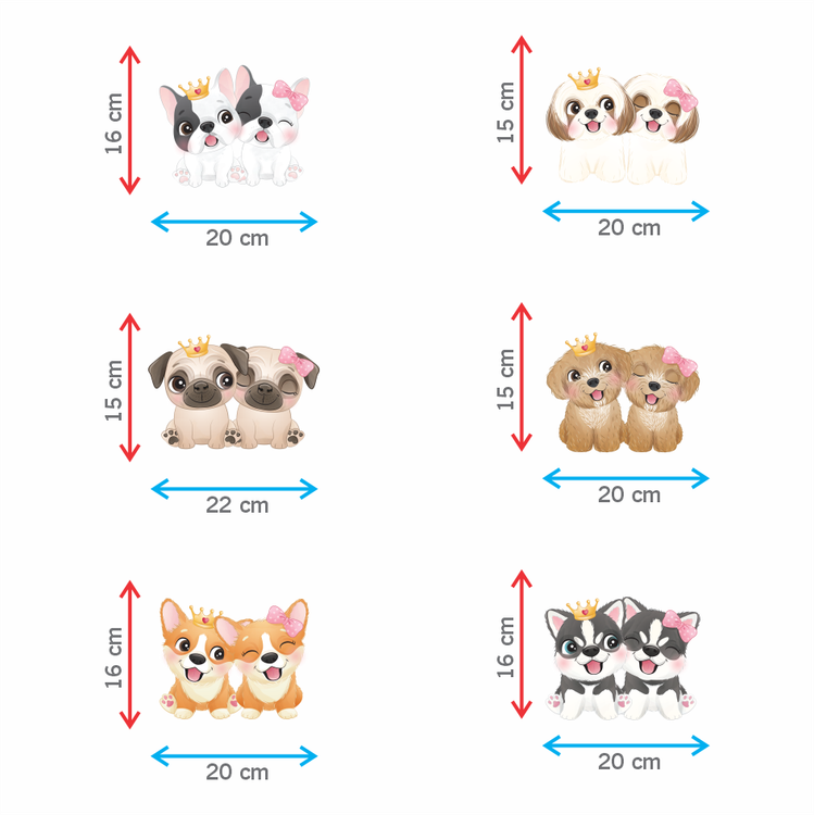 استیکر دیواری اتاق پت - پک هاپوهای عاشق - کد W084