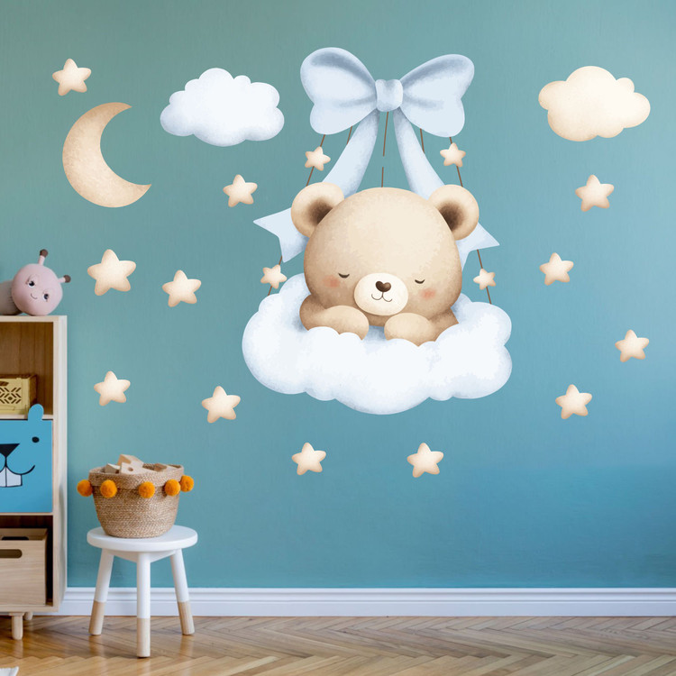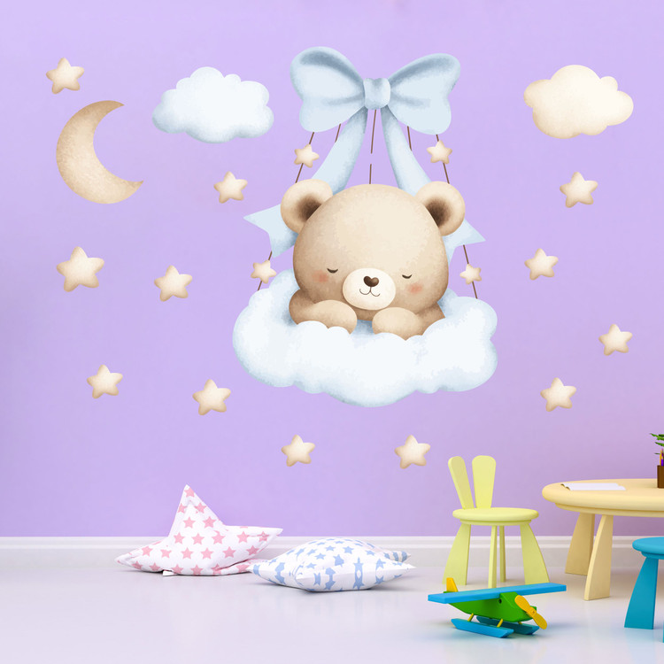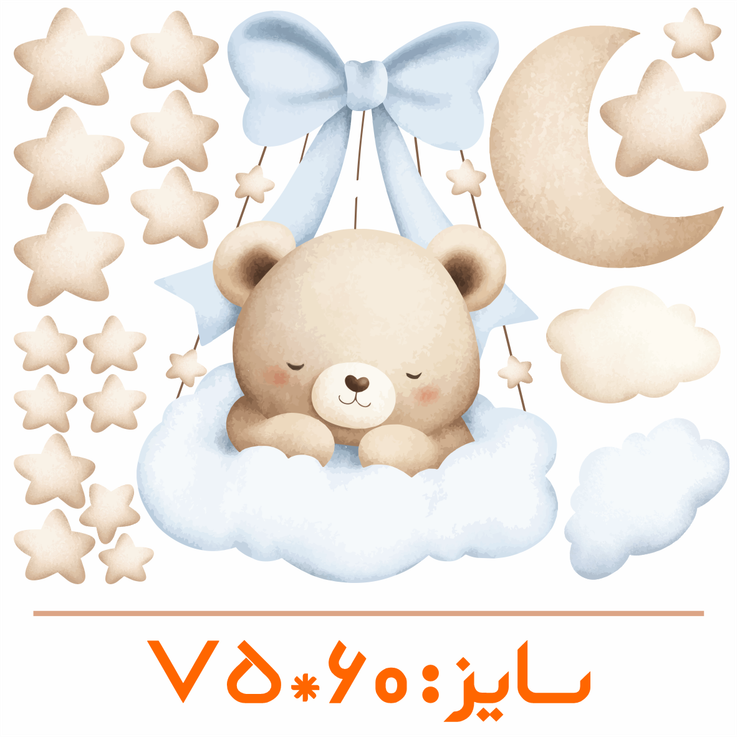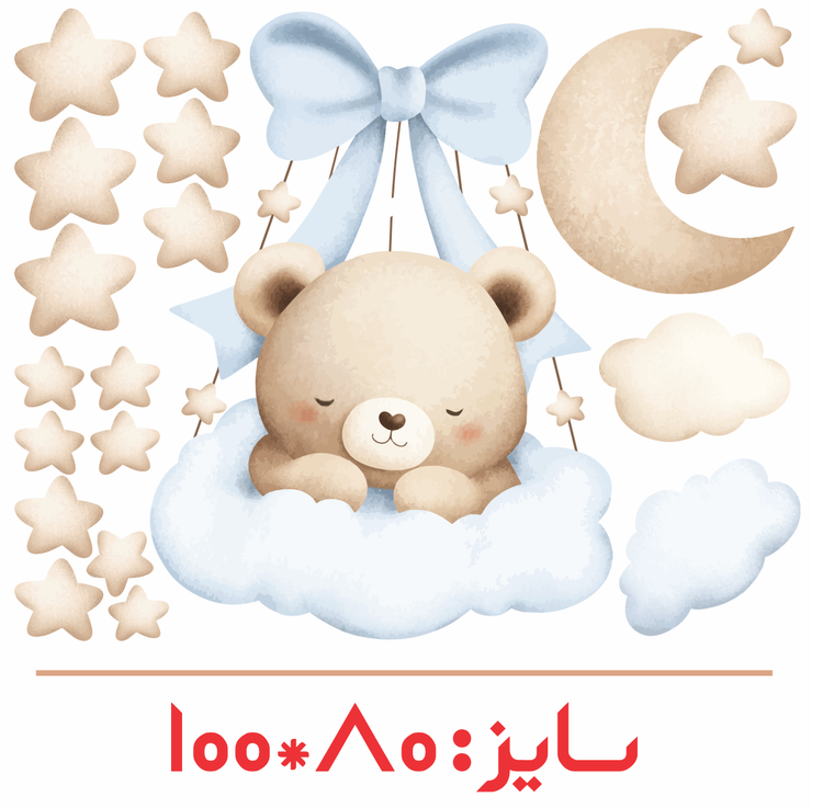 برچسب دیواری اتاق کودک - تدی کوچولو ( تم نسکافه ای ) - کد W167