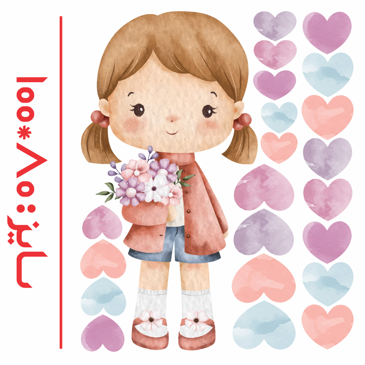 برچسب دیواری اتاق کودک - دختر کیوت - کد W173