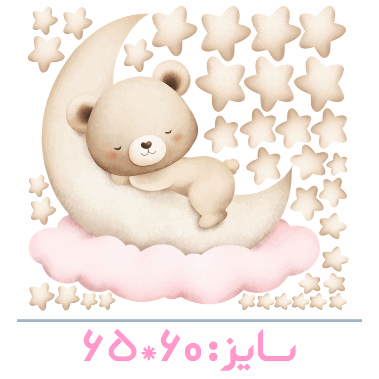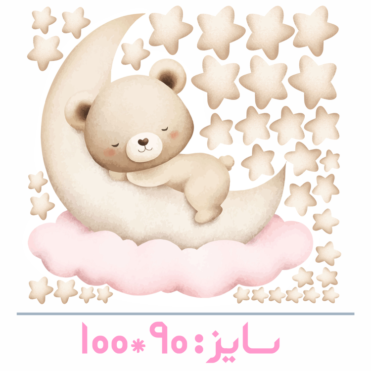 استیکر دیواری اتاق کودک - پک تدی کوچولو روی ابر و ماه ( تم نسکافه ای ) - با کلی ستاره - کد W144G