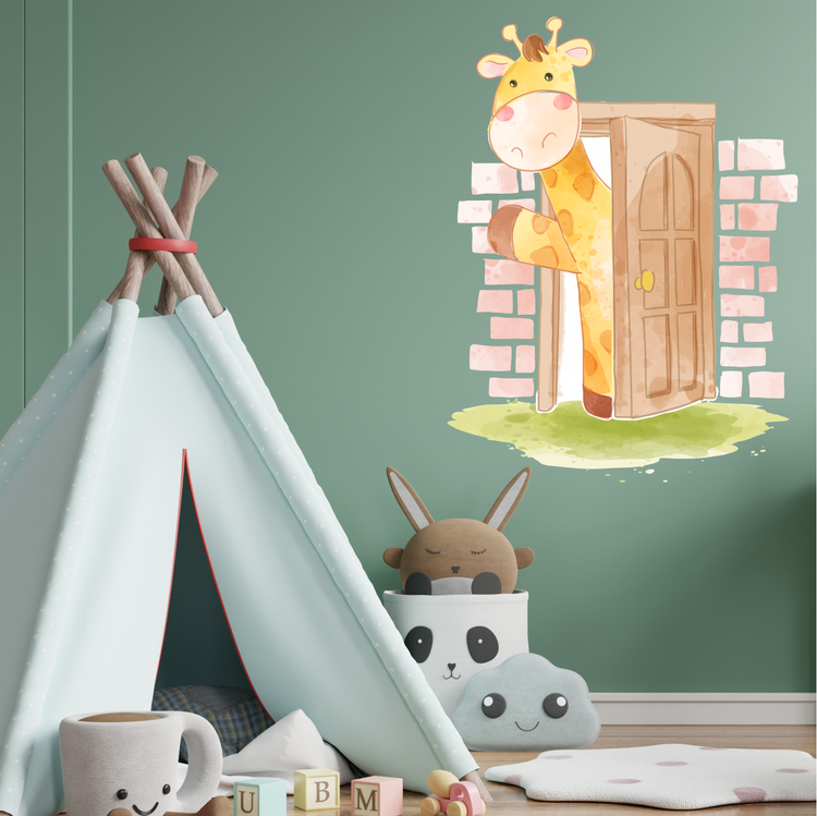 استیکر دیواری اتاق کودک - زرافه در حال خوش آمد گویی- کد W207