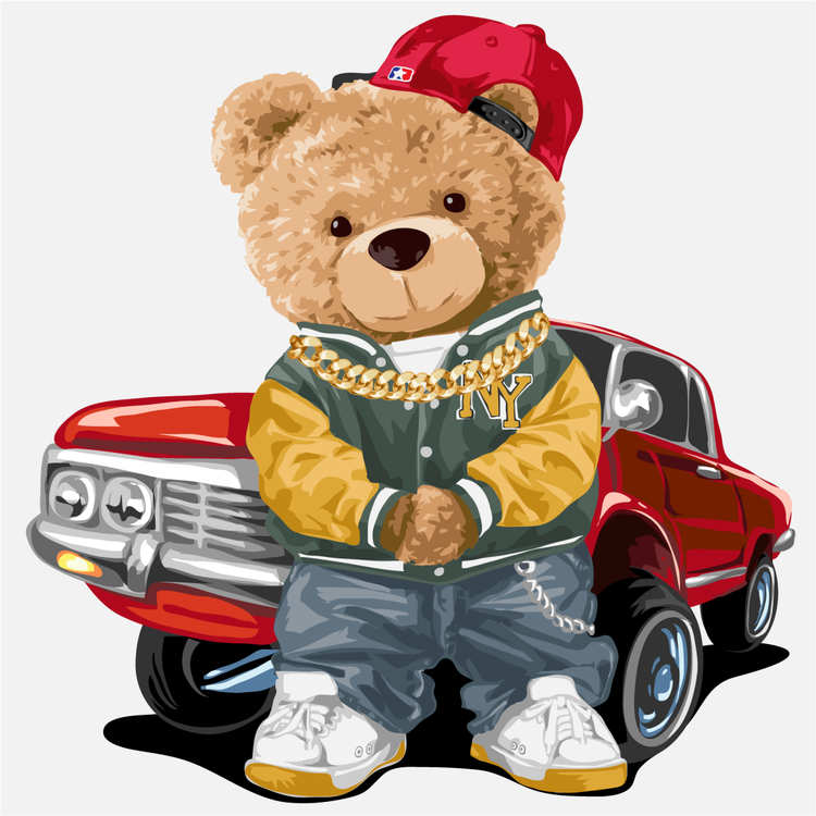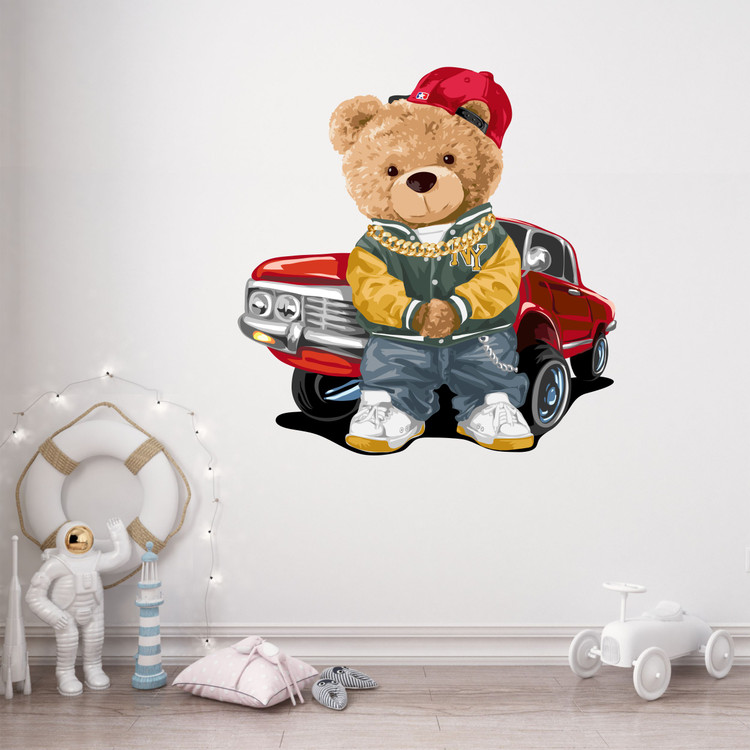 استیکر دیواری اتاق کودک - تدی با ماشین خفنش - کد W228
