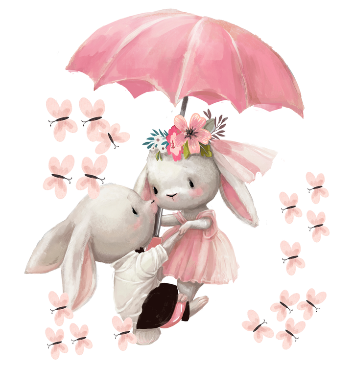 برچسب دیواری اتاق کودک - خرگوش های عاشق - کد W235