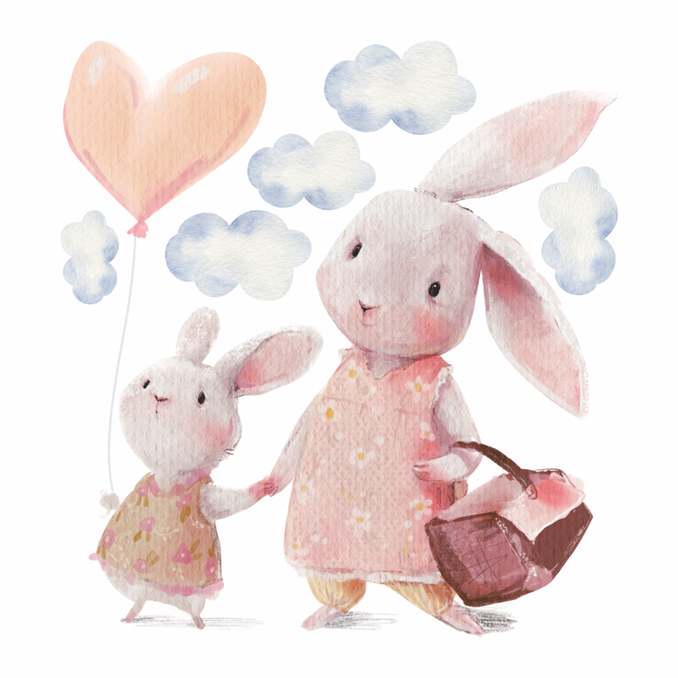 برچسب دیواری اتاق کودک - خرگوش کوچولو و مامانش - کد W238