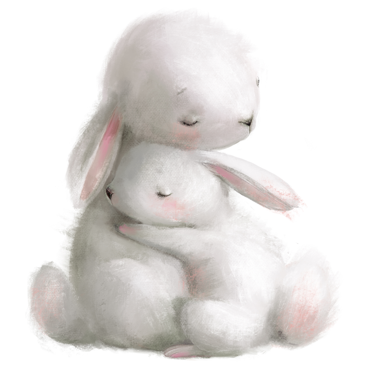 برچسب دیواری اتاق کودک - خرگوش نانازی و مامانش - کد W248