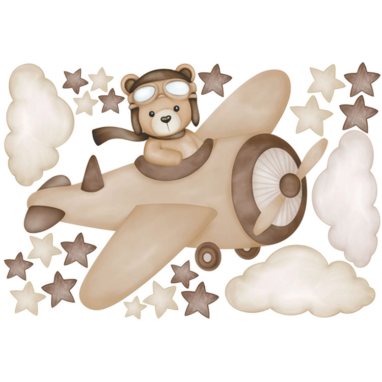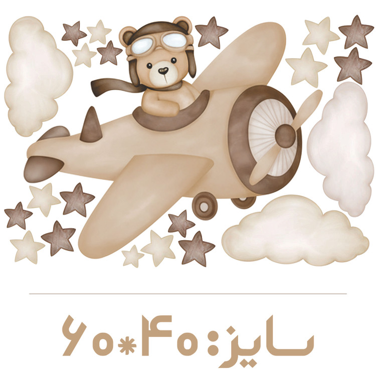 برچسب دیواری اتاق کودک - تدی خلبان ( تم نسکافه ای ) سایز کوچک - کد +W266
