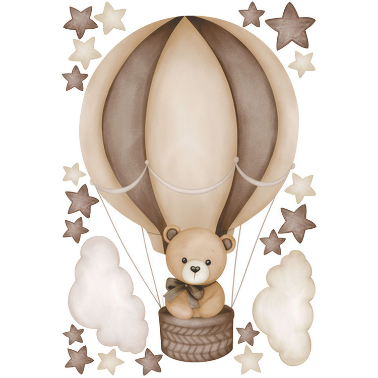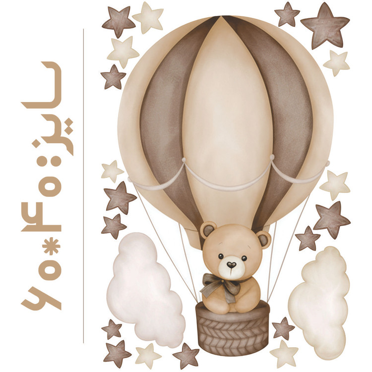 برچسب دیواری اتاق کودک - تدی در بالن ( تم نسکافه ای ) سایز کوچک- کد +W268