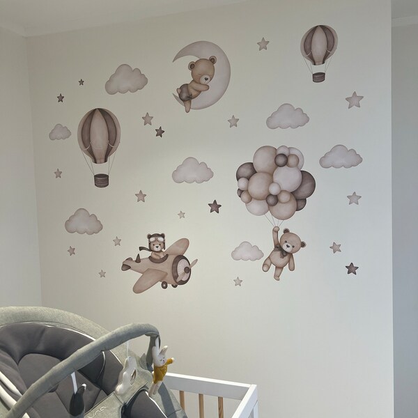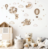 برچسب دیواری اتاق کودک - تدی در آسمان ( تم نسکافه ای ، بژ ) - کد W297