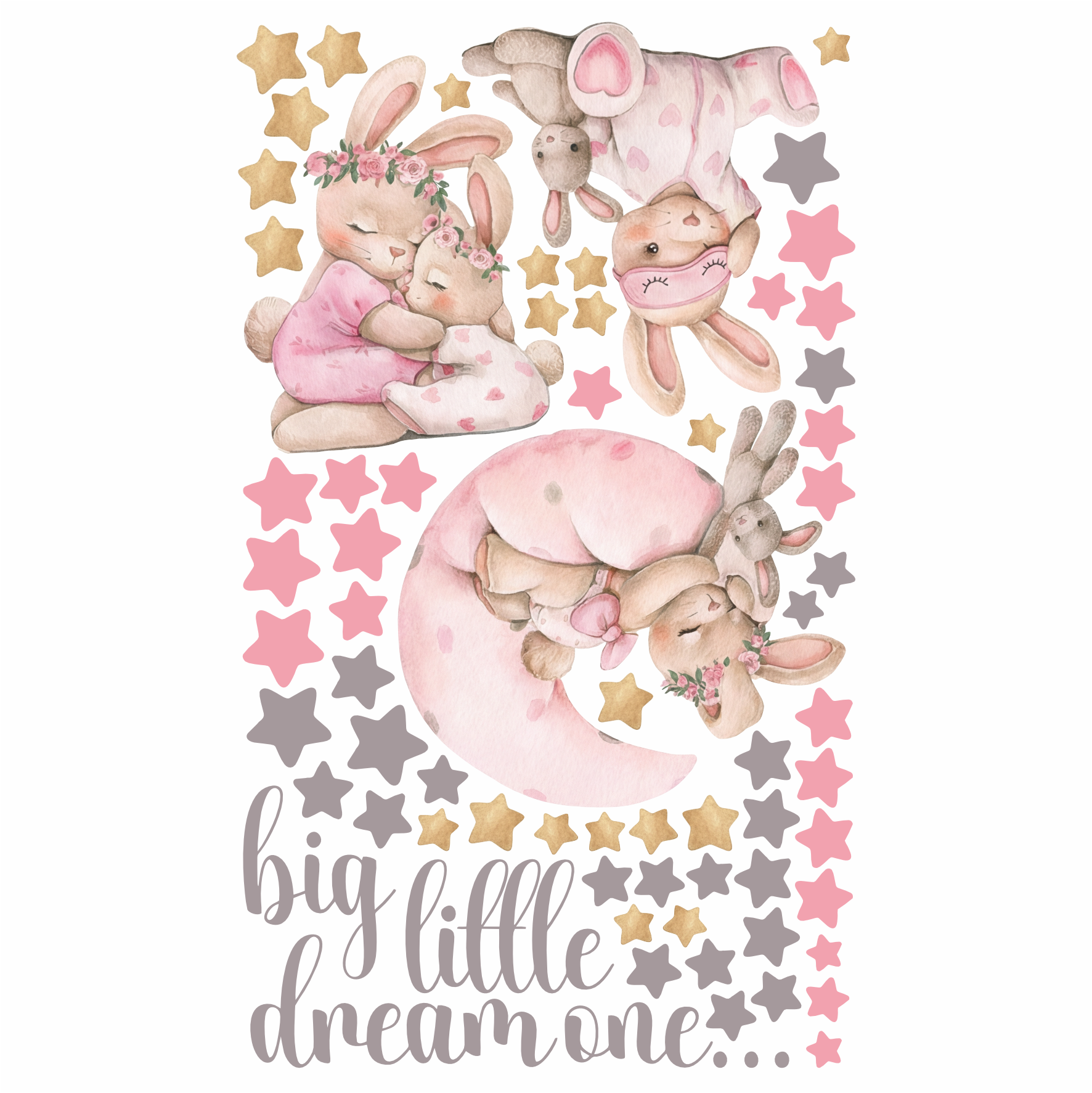 برچسب دیواری اتاق کودک - رویای خرگوش ( تم صورتی ) - با 62 عدد ستاره - کد W310