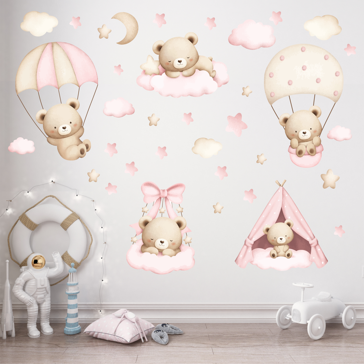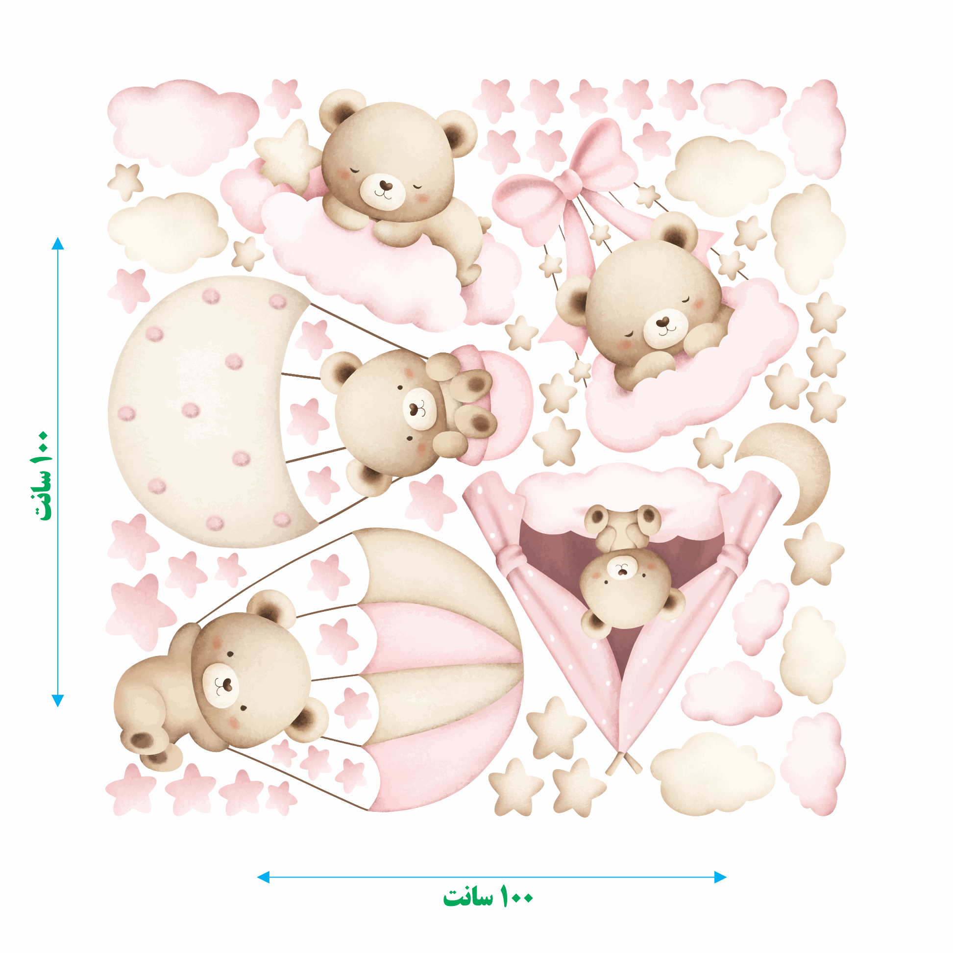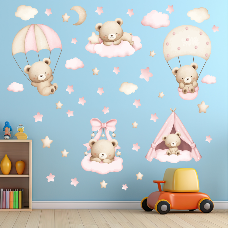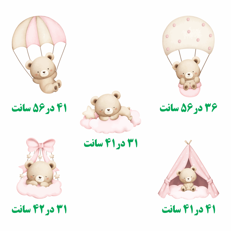 برچسب دیواری اتاق کودک - پک زیبای رویای تدی کوچولو - کد W161